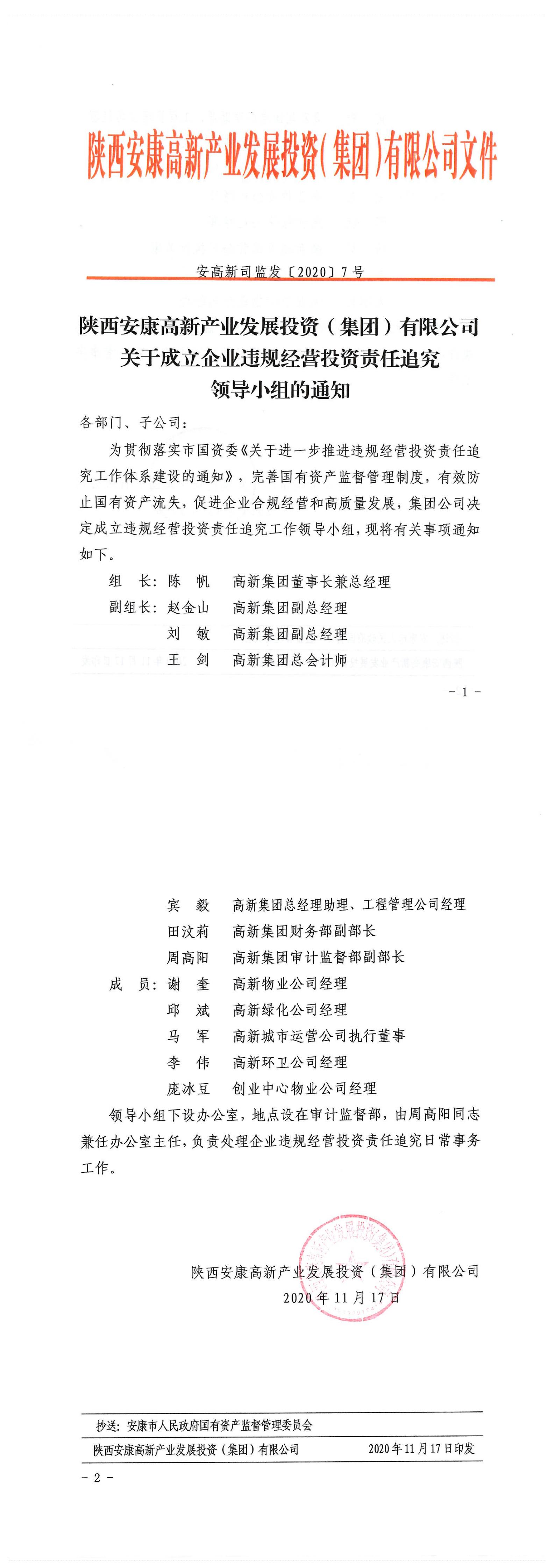 關(guān)于成立企業(yè)違規(guī)經(jīng)營投資責(zé)任追究領(lǐng)導(dǎo)小組的通知